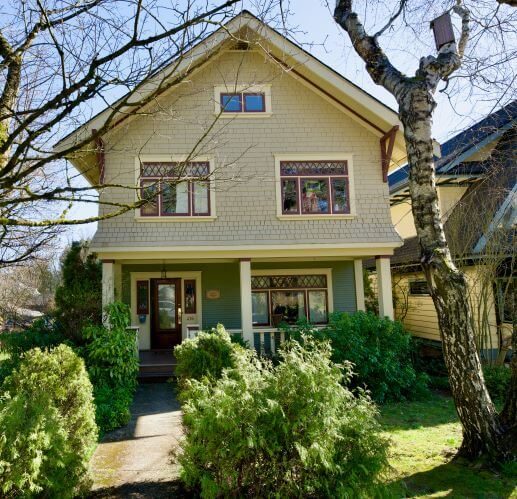 Built in 1912 by Charles Downer for developer George Henderson, this house is a perfect example of the Arts and Crafts style with shingle siding, a full-width porch and leaded-glass windows. George Henderson is also listed as building the adjacent house at 418 St. George Street.