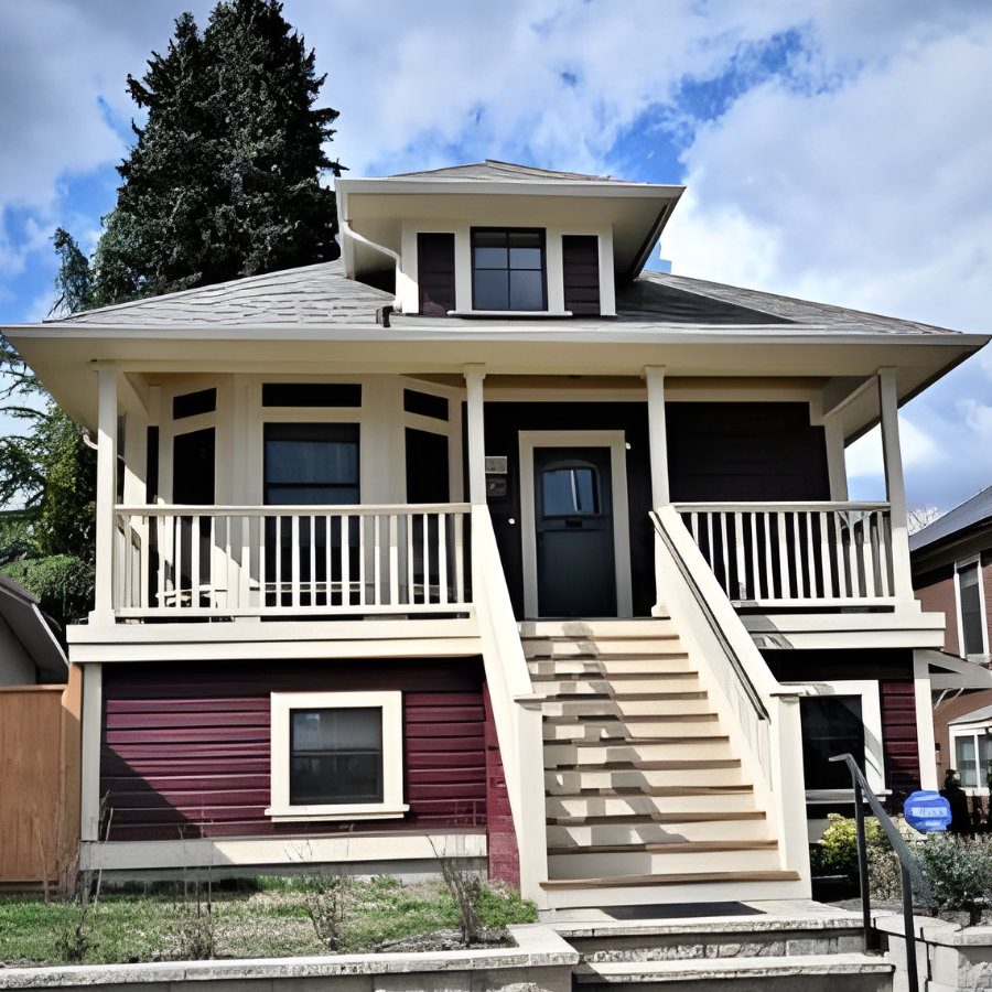 A fine example of Early Cottage style with its hipped roof over a full-length porch and single dormer, the house was built in 1911 on the edge of the park following the completion of the Fraser Street streetcar line.