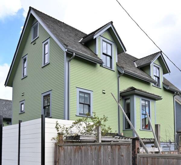 The aging house was set way back and was an ideal location for the HRA that led to more affordable housing options (townhomes) and a formally protected house. The house was built far back on the existing property and in in 2016 a Heritage Revitalization Agreement was proposed to allow greater density on the lot by creating two new duplex houses at the front near Third Ave. while saving and formally protecting the original house.