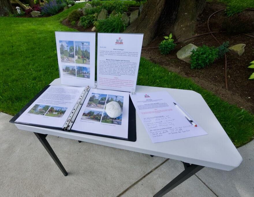 During this year’s Heritage Homes Tour, over 150 New West and Lower Mainland residents signed a petition urging the City to preserve the heritage-style streetlights in the Massey Victory Heights (MVH) neighbourhood. The petition calls on City Council to explore options for retaining some or all of the distinctive low, post-top light standards that help define the area’s historic character.